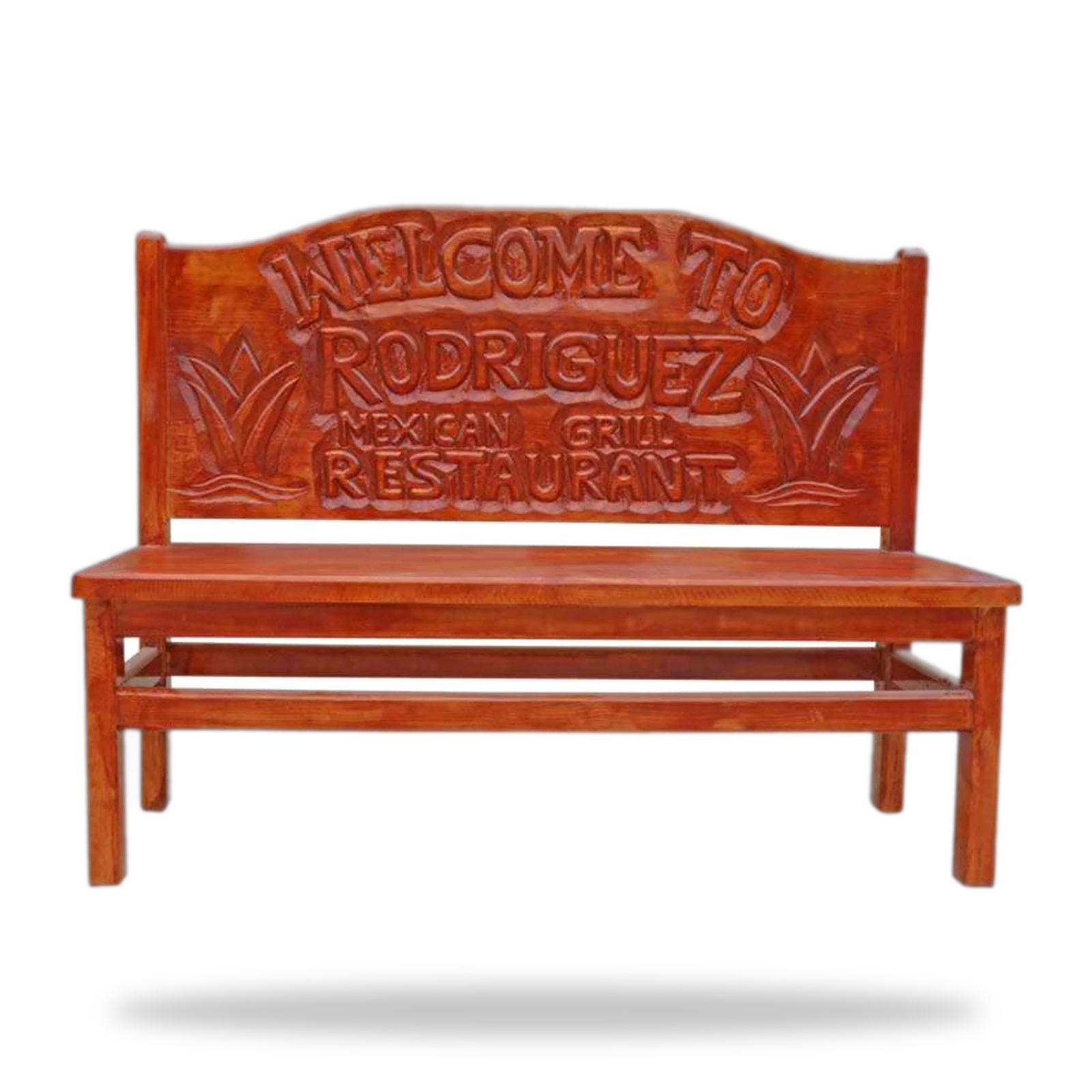 Este bancas banca 004 artesanal en madera maciza. Resistente, auténtico y perfecto para restaurantes y bares con estilo mexicano.