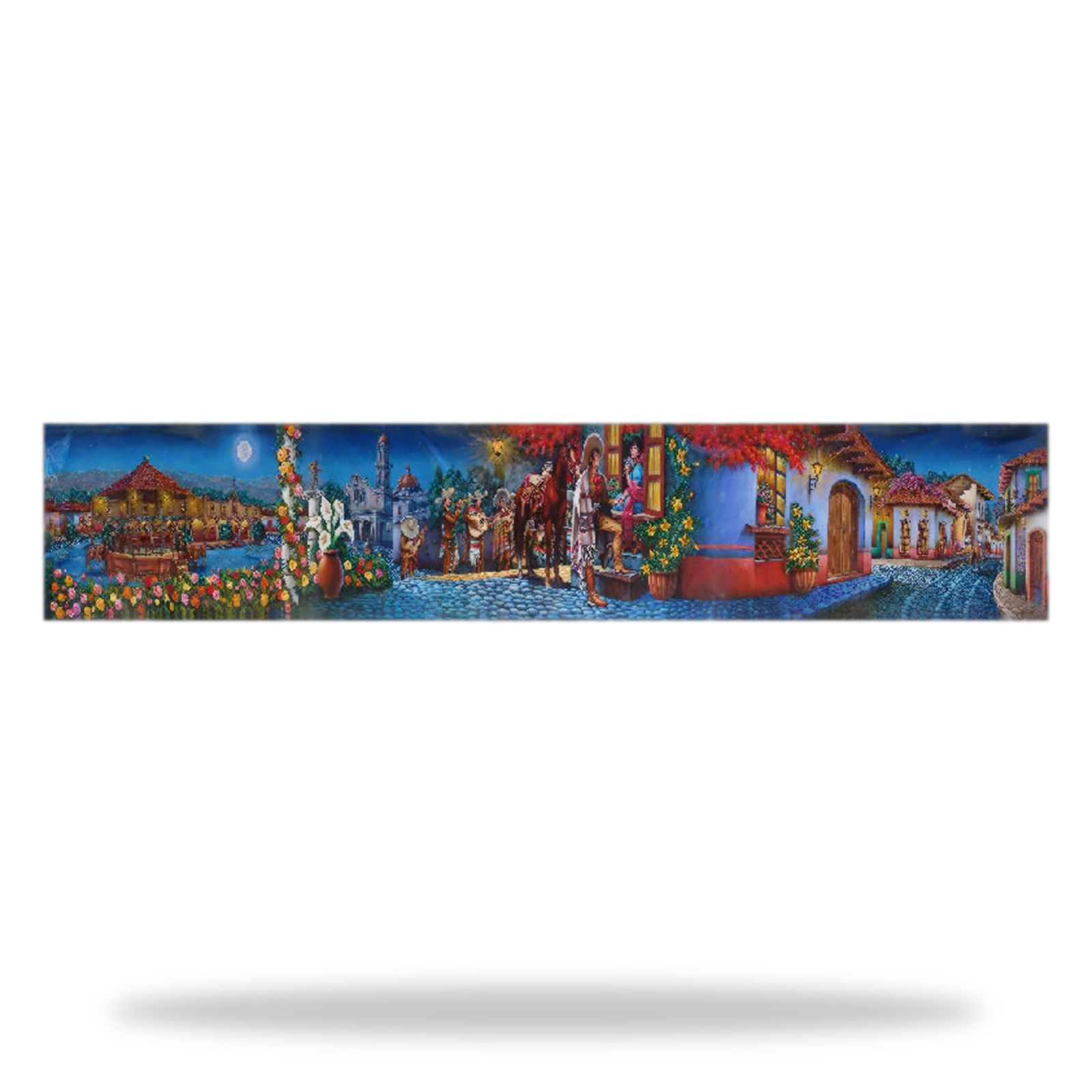 Este murales mural Pueblo artesanal en madera maciza. Resistente, auténtico y perfecto para restaurantes y bares con estilo mexicano.