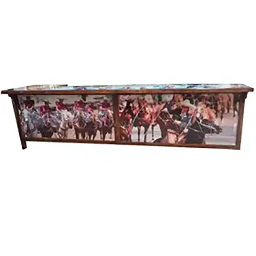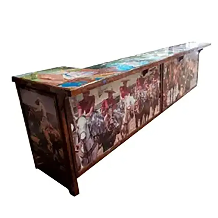 Barra 12 artesanal en madera maciza. Resistente, auténtico y perfecto para restaurantes y bares con estilo mexicano.