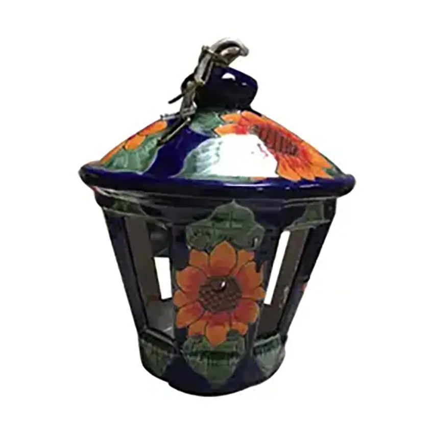 Candil azul artesanal en madera maciza. Resistente, auténtico y perfecto para restaurantes y bares con estilo mexicano.