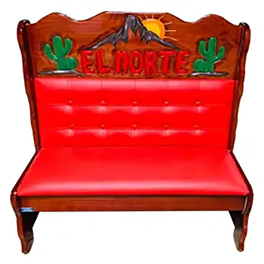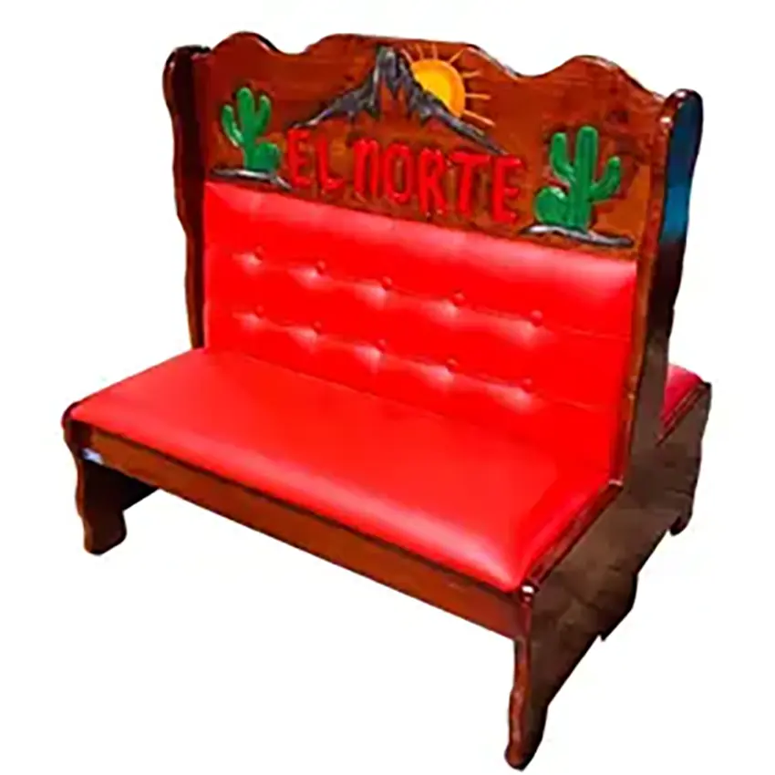 Norte rojo artesanal en madera maciza. Resistente, auténtico y perfecto para restaurantes y bares con estilo mexicano.