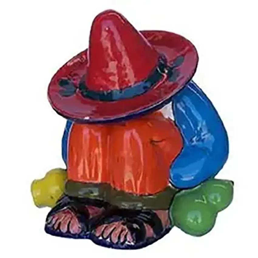 Pancho sentado artesanal en madera maciza. Resistente, auténtico y perfecto para restaurantes y bares con estilo mexicano.