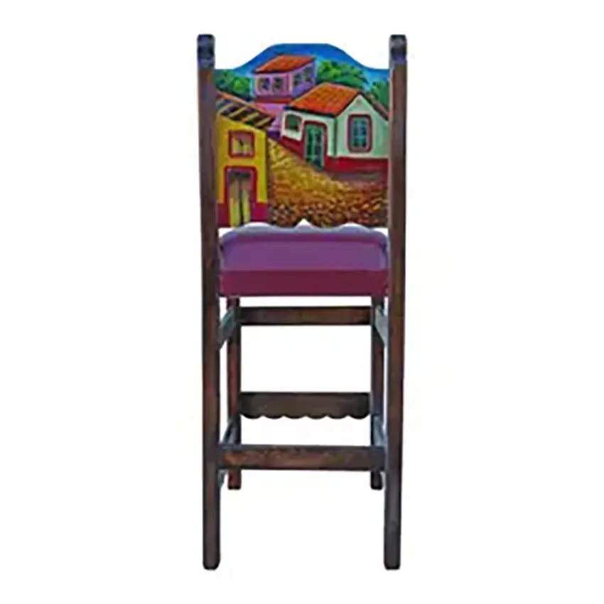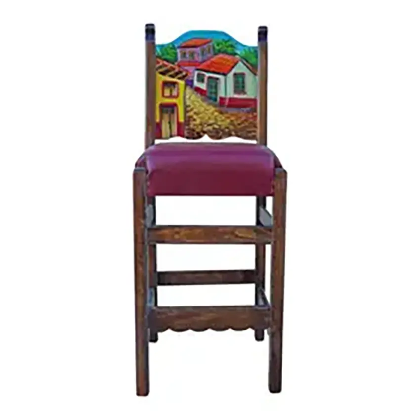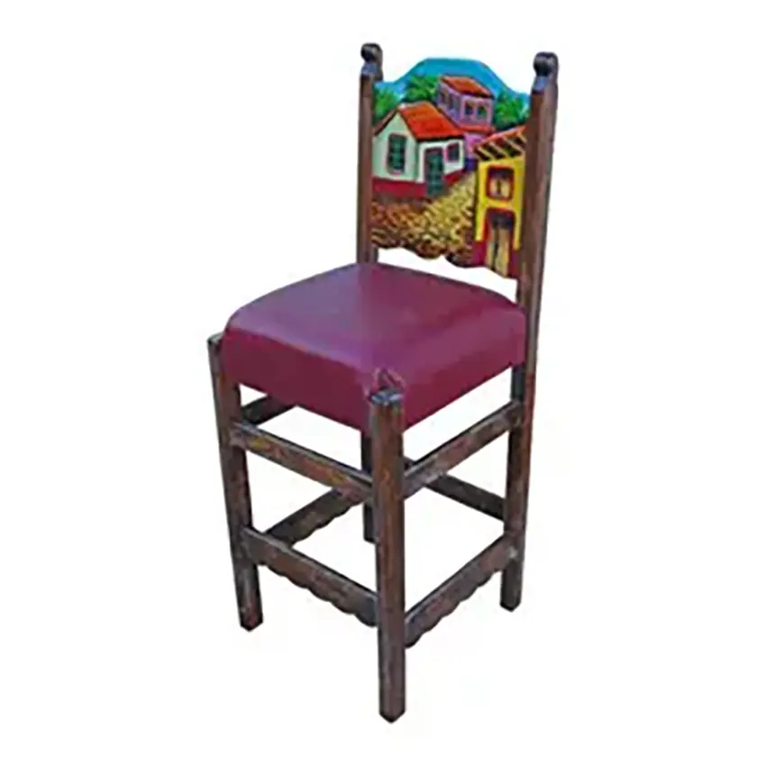 Silla bar Pueblito artesanal en madera maciza. Resistente, auténtico y perfecto para restaurantes y bares con estilo mexicano.