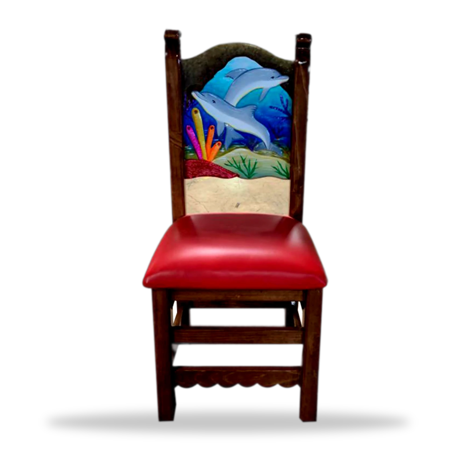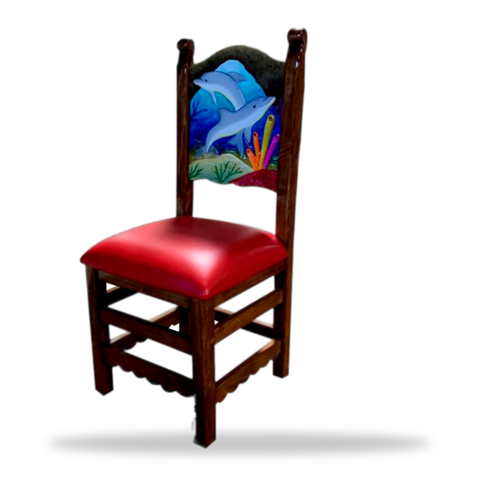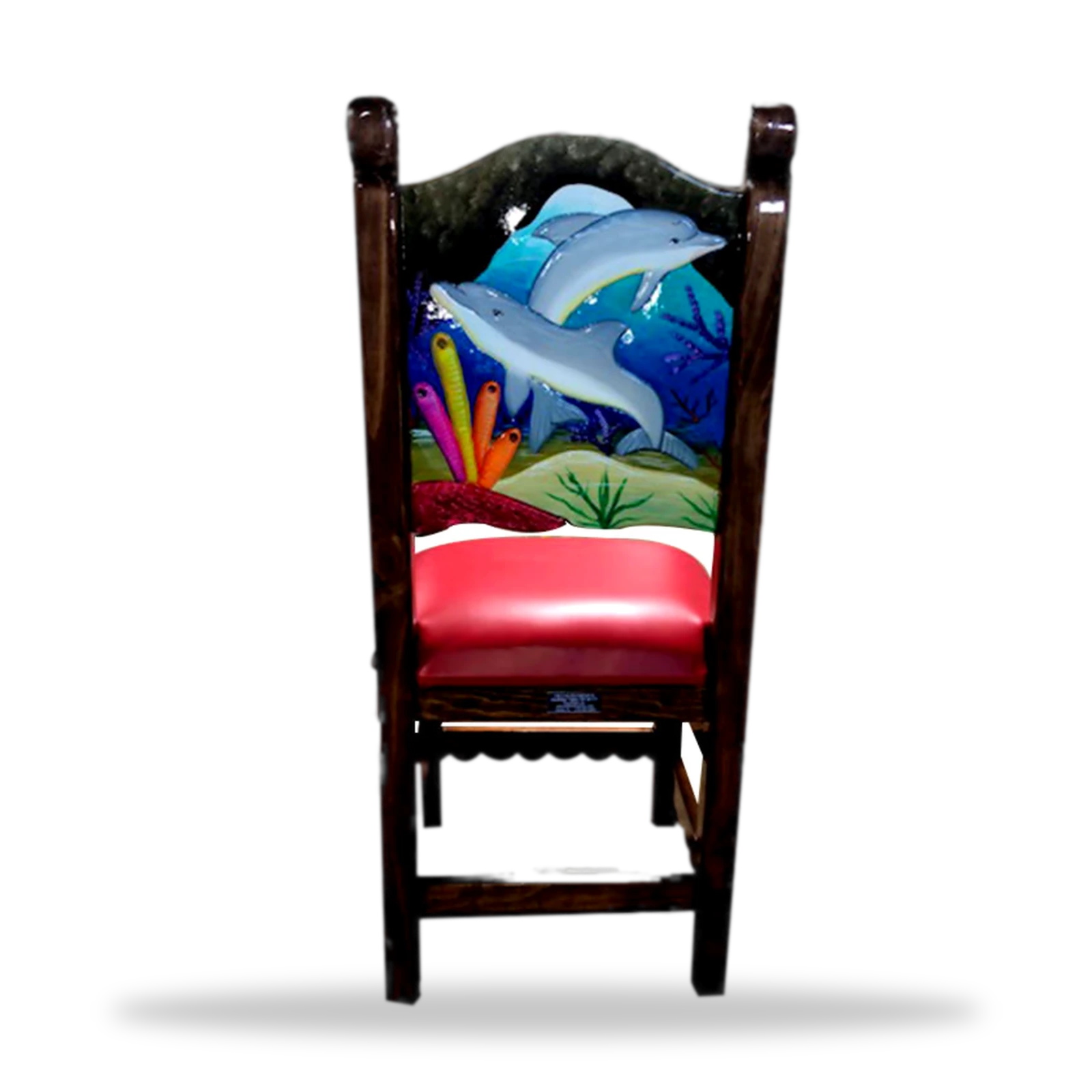 Este silla artistica tallado Artistico 048 artesanal en madera maciza. Resistente, auténtico y perfecto para restaurantes y bares con estilo mexicano.