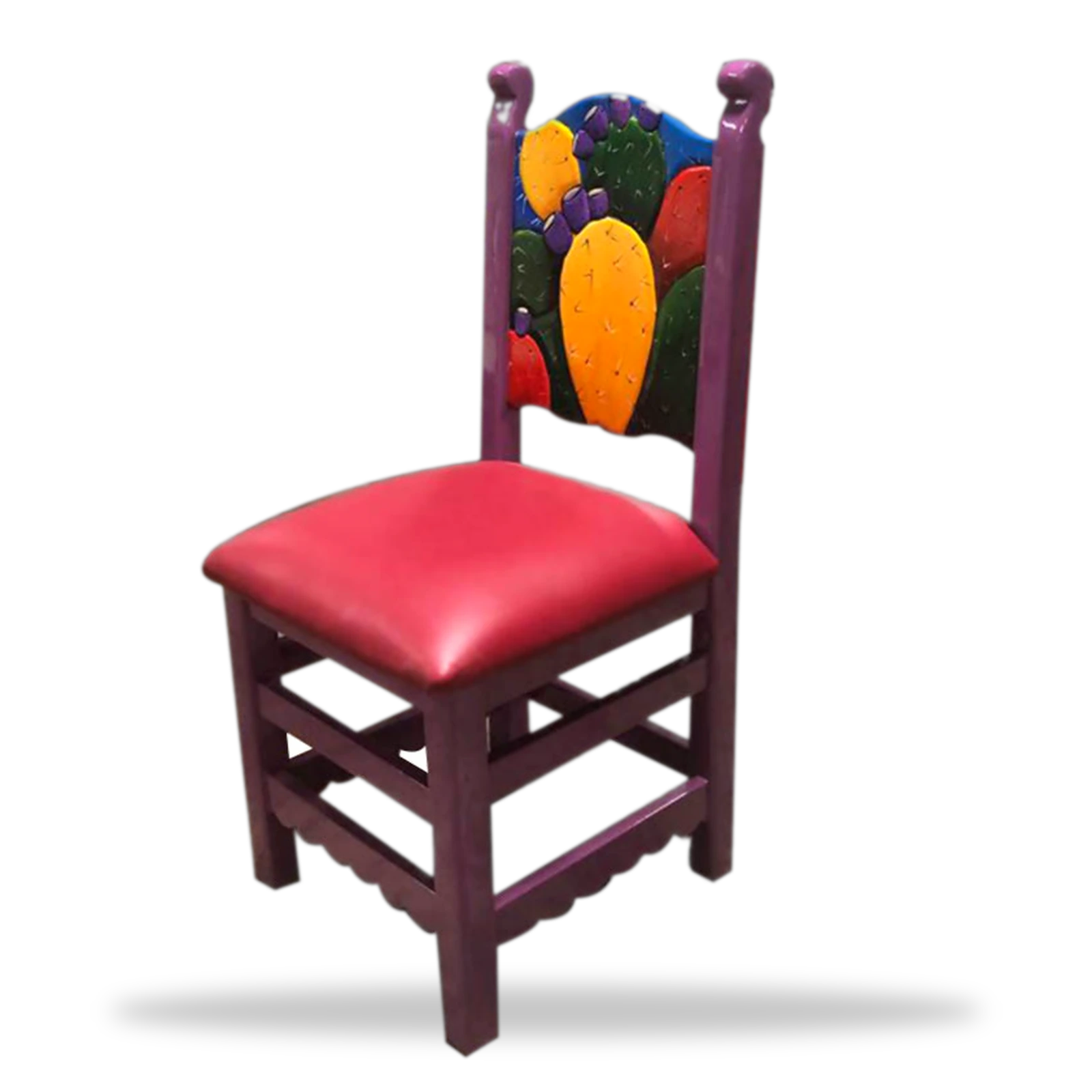 Este silla artistica tallado Artistico 053 artesanal en madera maciza. Resistente, auténtico y perfecto para restaurantes y bares con estilo mexicano.