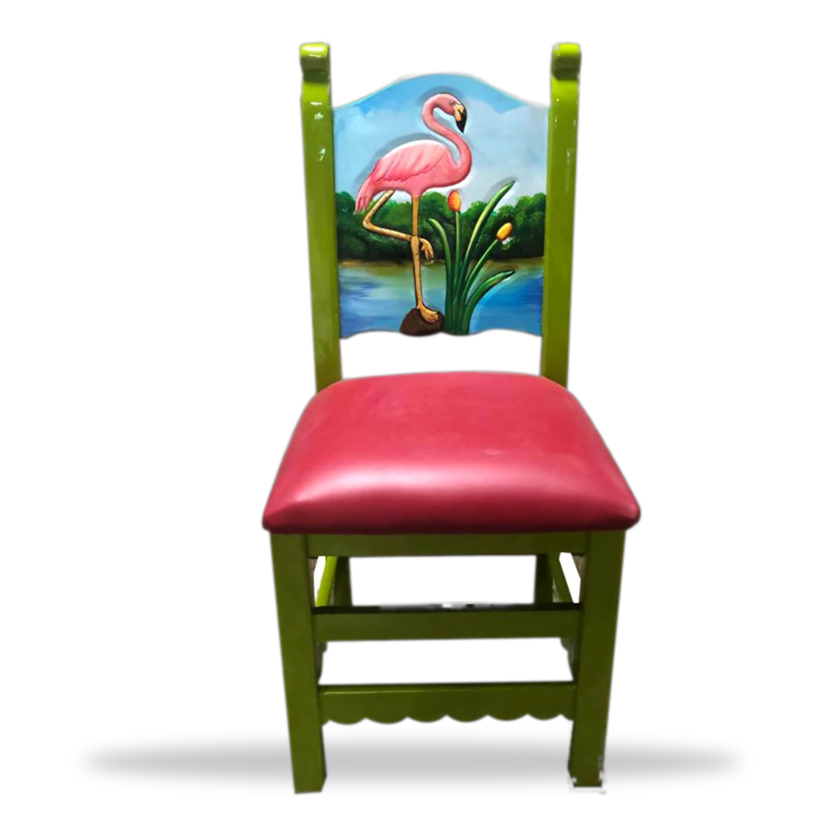 Este silla artistica tallado Artistico 055 artesanal en madera maciza. Resistente, auténtico y perfecto para restaurantes y bares con estilo mexicano.