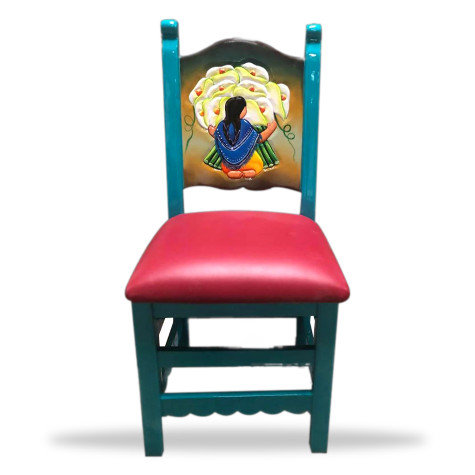 Este silla artistica tallado Artistico 057 artesanal en madera maciza. Resistente, auténtico y perfecto para restaurantes y bares con estilo mexicano.