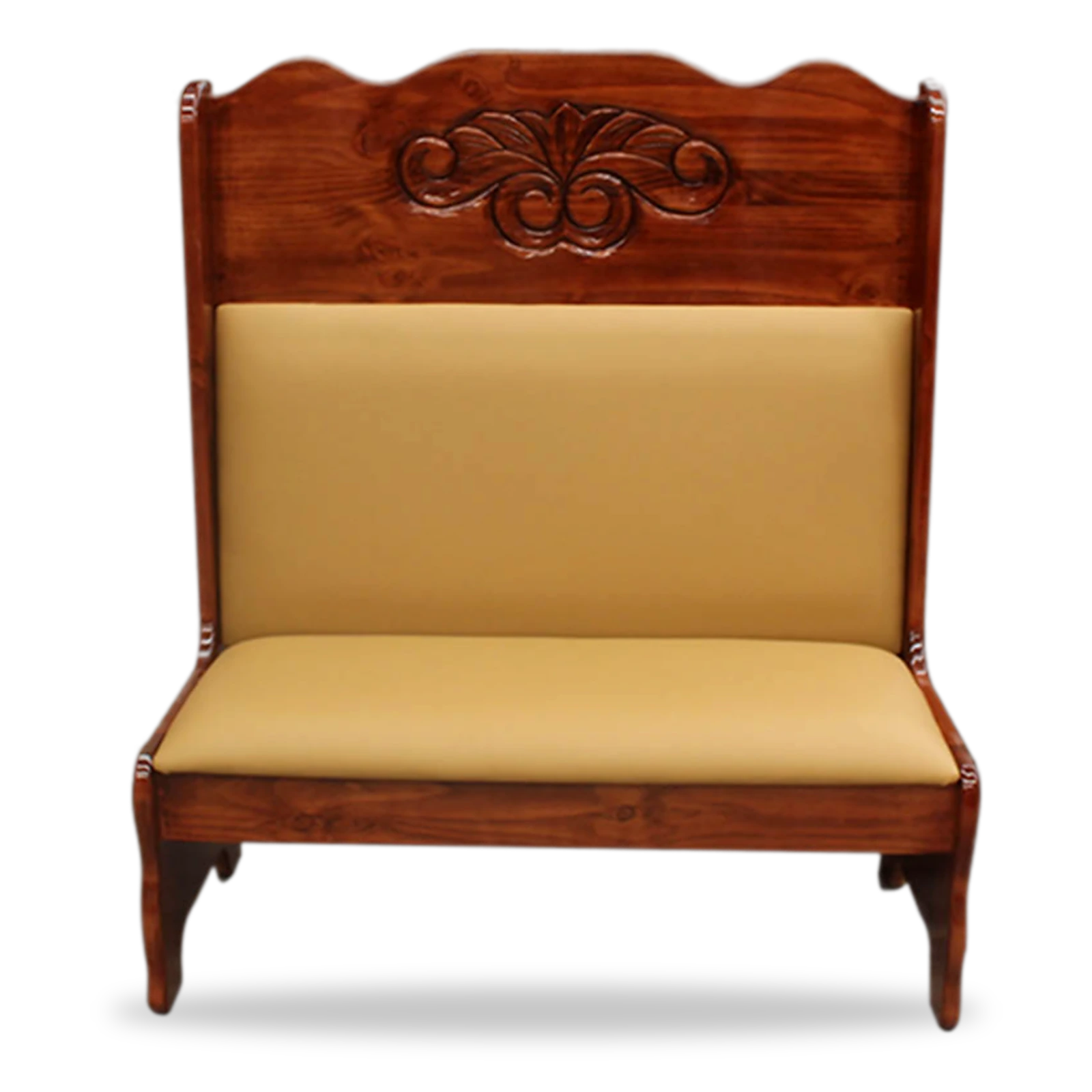 Este booth rustico grabado sencillo artesanal en madera maciza. Resistente, auténtico y perfecto para restaurantes y bares con estilo mexicano.