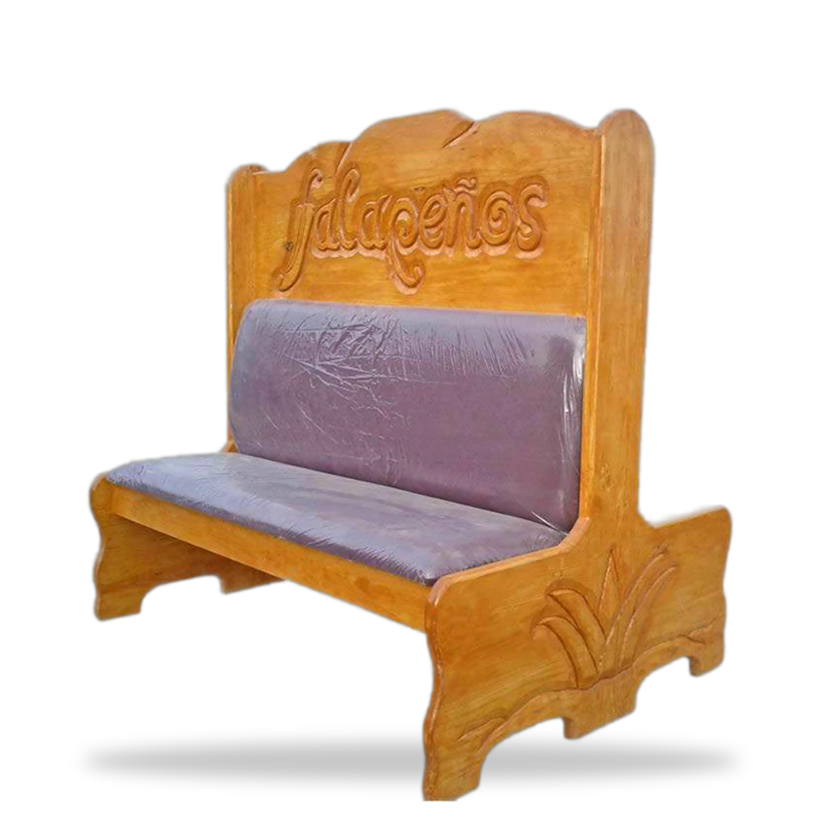 Este booth rustico jalapenos artesanal en madera maciza. Resistente, auténtico y perfecto para restaurantes y bares con estilo mexicano.