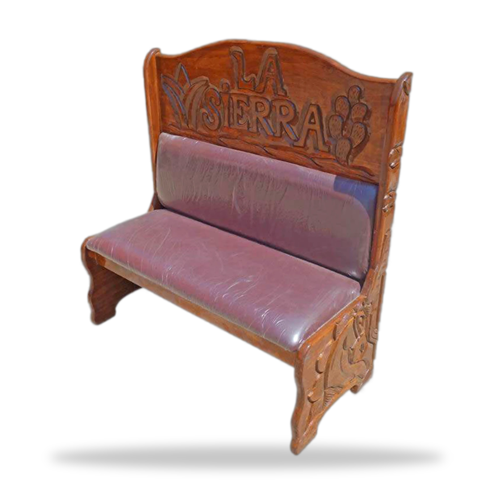 Este booth rustico la sierra artesanal en madera maciza. Resistente, auténtico y perfecto para restaurantes y bares con estilo mexicano.