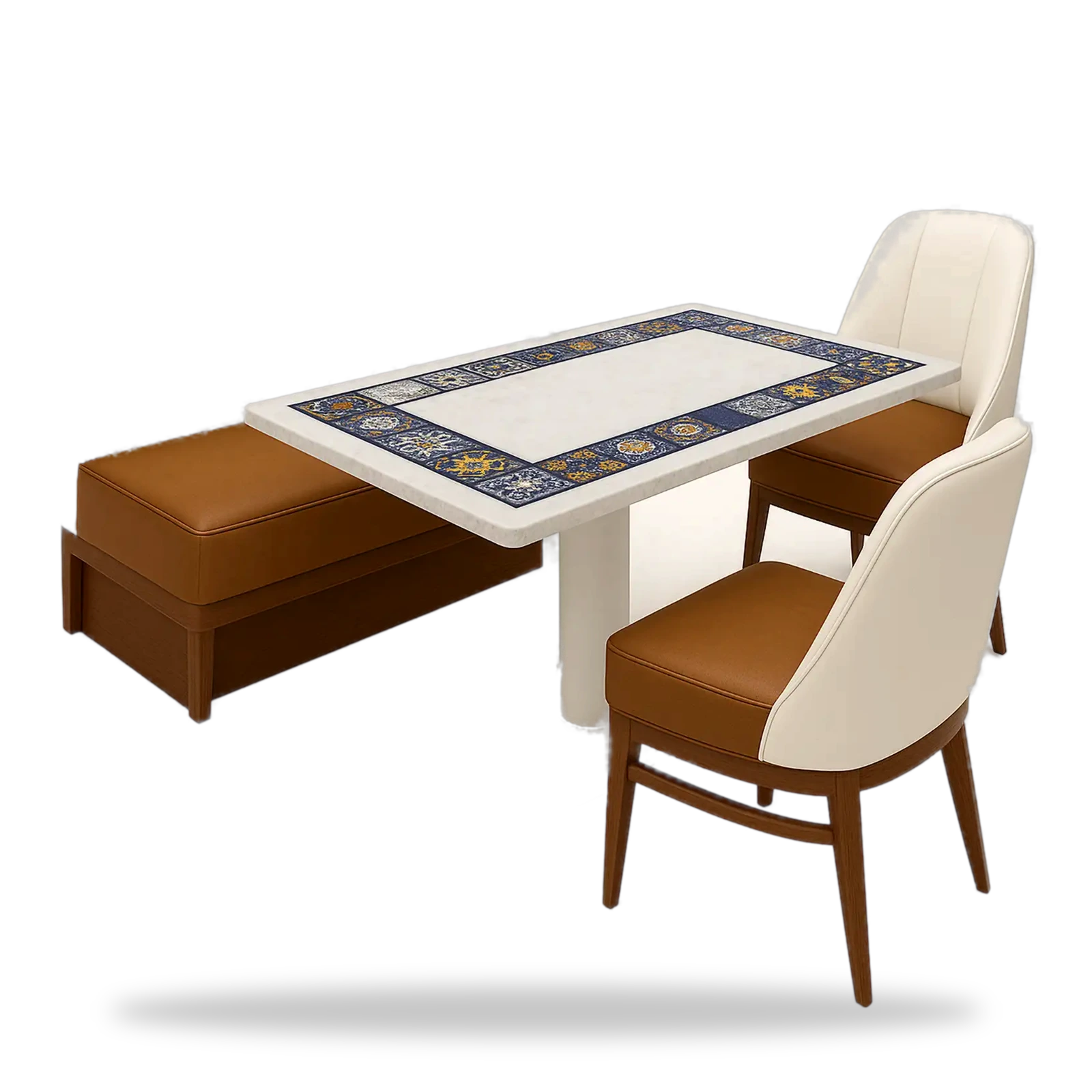 Nuestro **Espanol Marmoleado** (Mesa Española) está elaborada artesanalmente en madera de alta calidad. Diseñada para aportar un estilo auténtico y rústico a tu restaurante o bar, combina resistencia, comodidad y un acabado mexicano único.