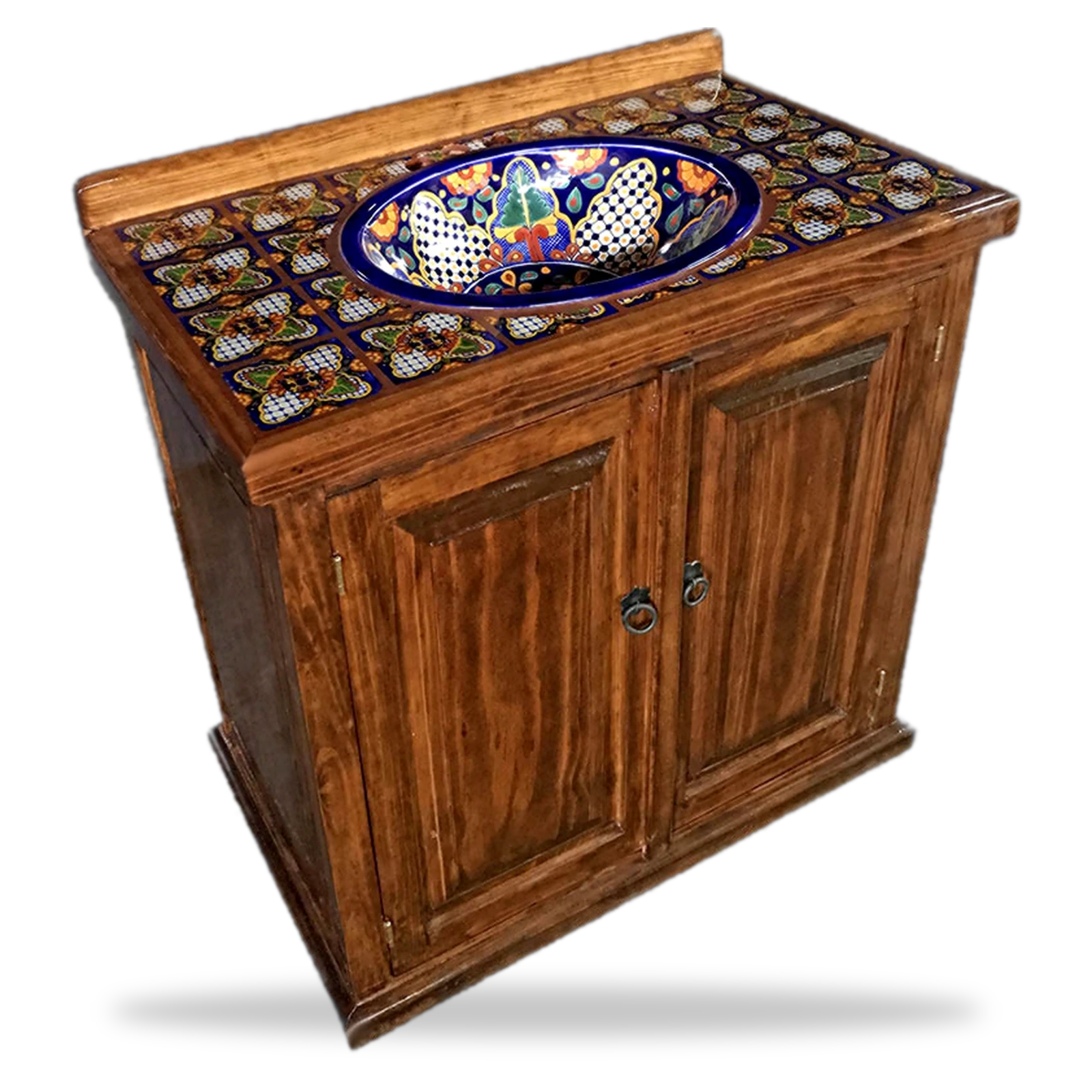 Este para baño lavamanos Dos artesanal en madera maciza. Resistente, auténtico y perfecto para restaurantes y bares con estilo mexicano.