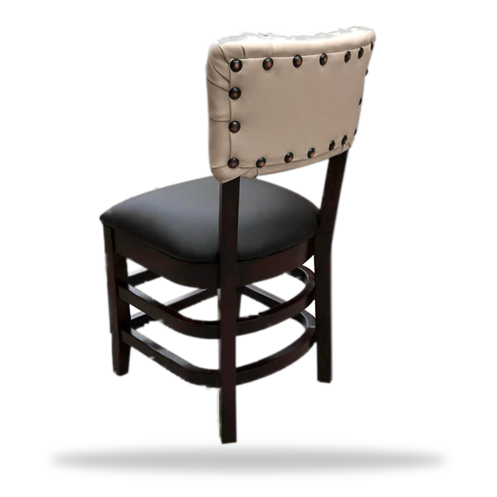 Este modelo está disponible en distintos tonos de madera (claro, nogal, caoba, oscuro) y en varios colores de tapizado. También podemos personalizar medidas y acabados para que se adapten perfectamente al estilo y decoración de tu restaurante.