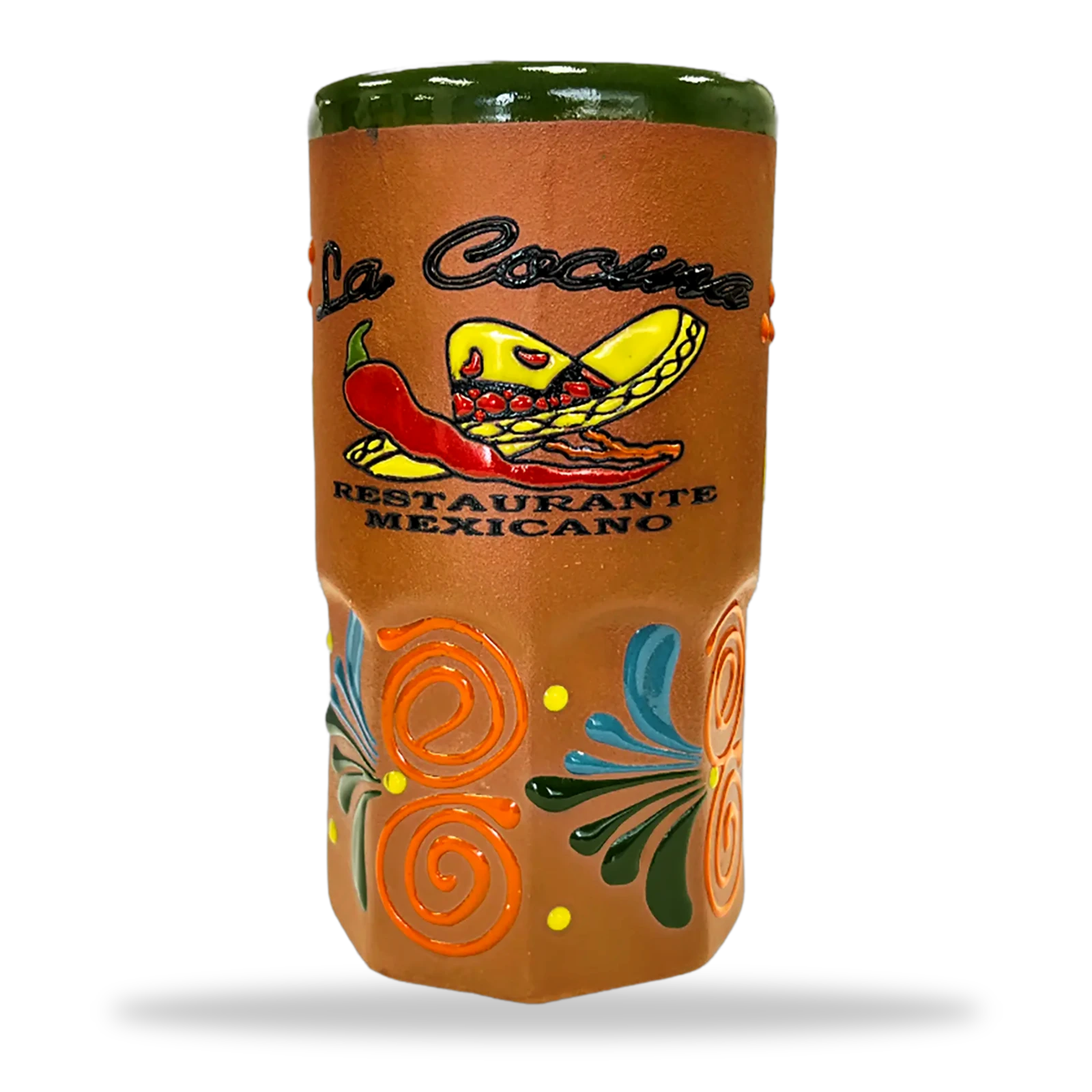 Este vidrio soplado tarro a color artesanal en madera maciza. Resistente, auténtico y perfecto para restaurantes y bares con estilo mexicano.